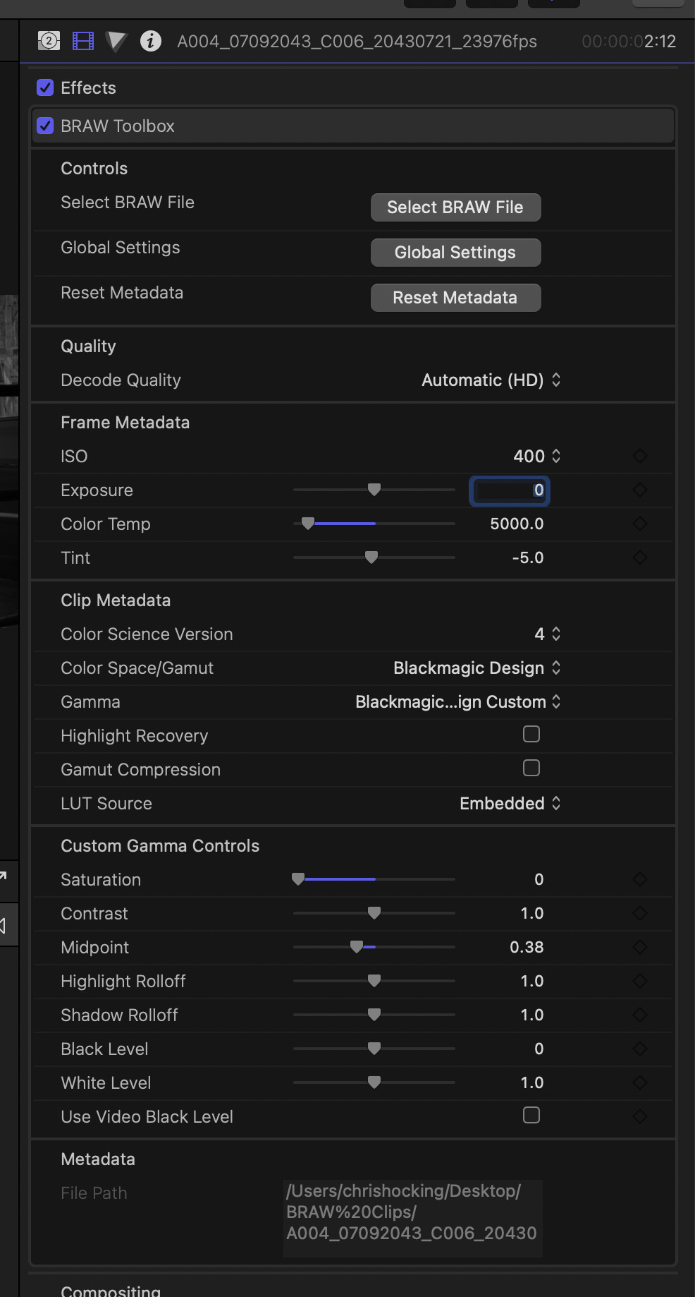 BRAW Toolbox comes with a Metadata View that allows you to view every piece of BRAW Metadata directly within the Final Cut Pro Inspector.