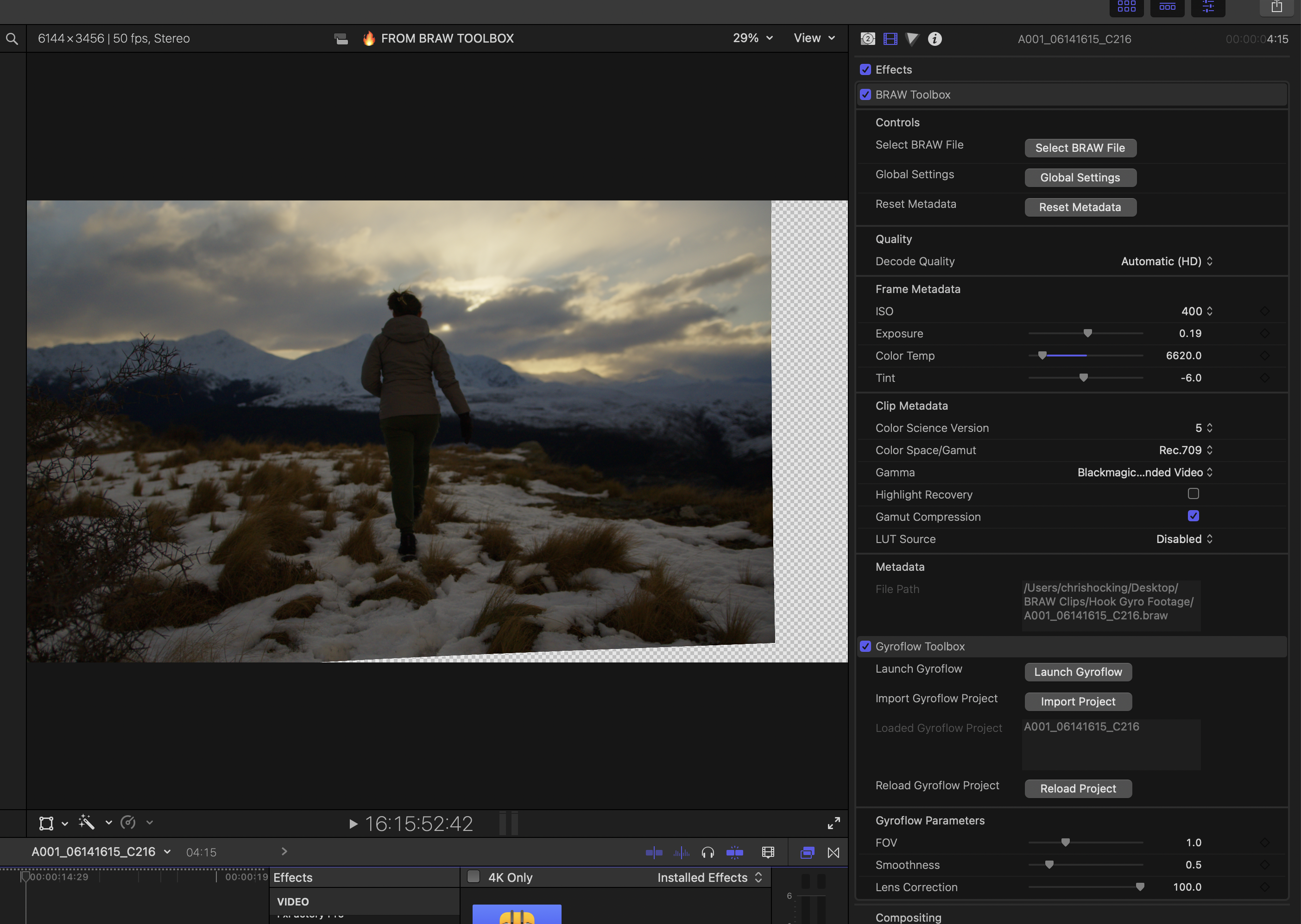 You can combine BRAW Toolbox with Gyroflow Toolbox to bring gyroscope stabilisation directly to Final Cut Pro!