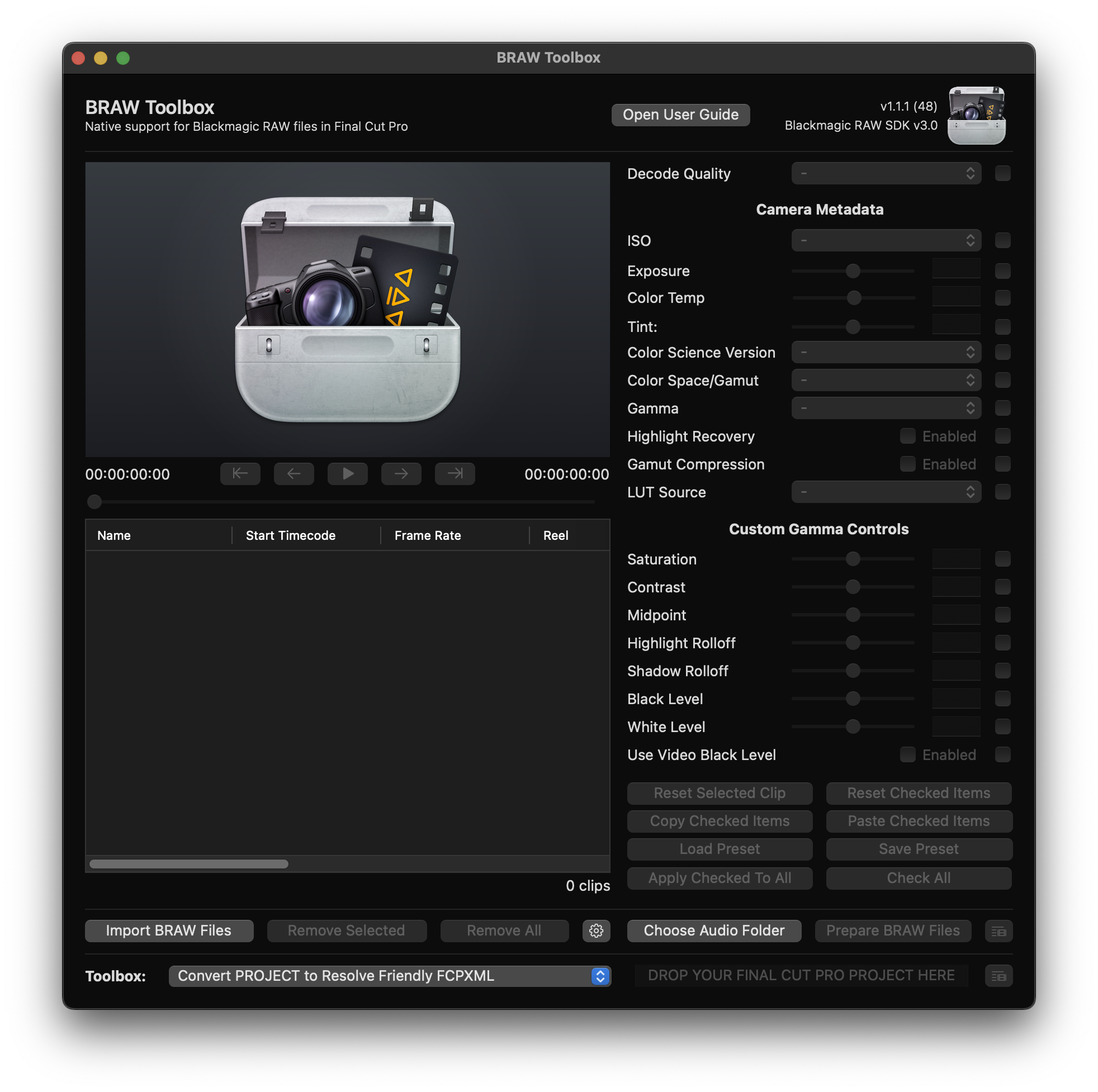 TIP: You can also drag-and-drop BRAW files from Finder to the File List.