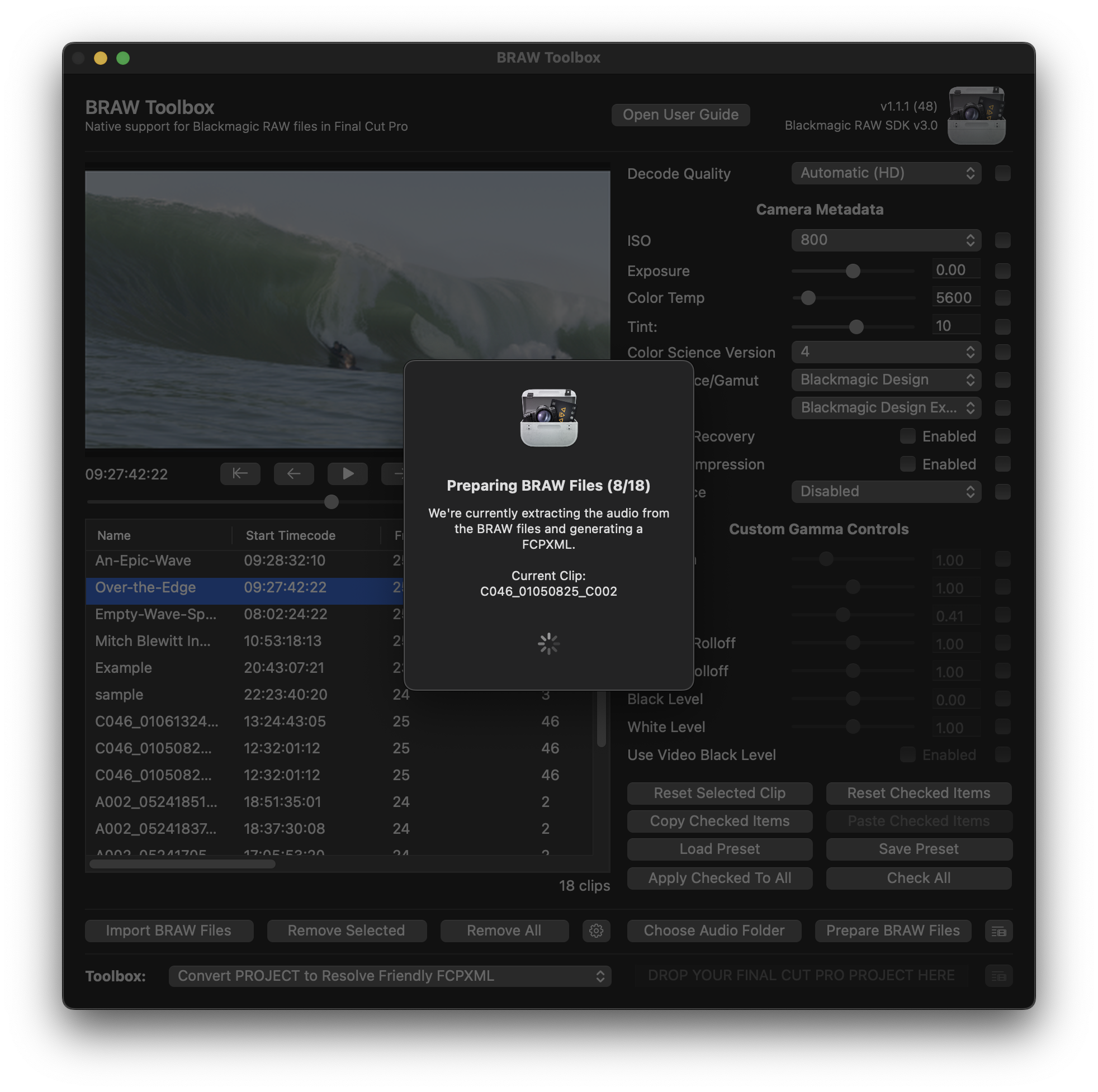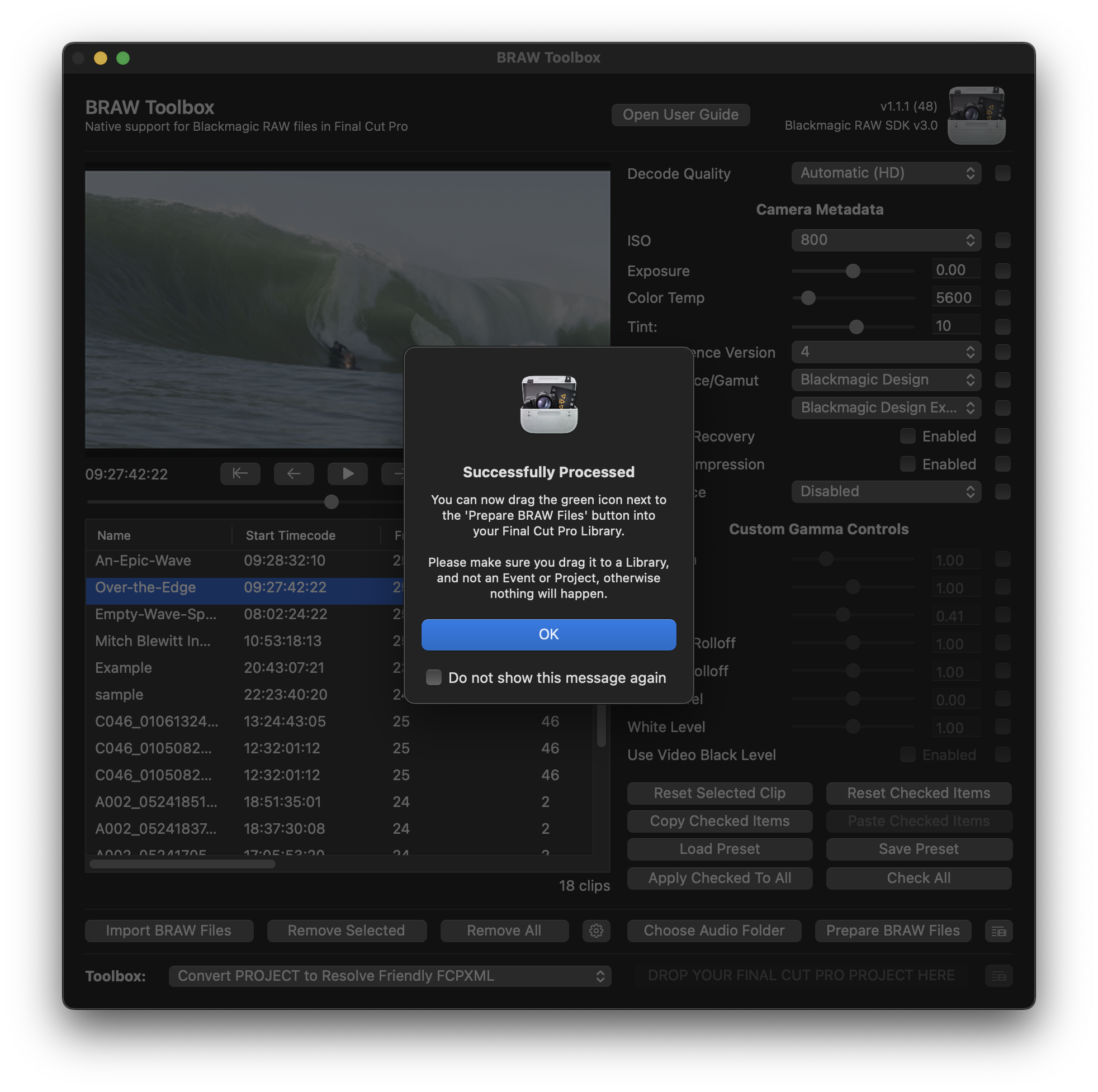 Once you've tweaked any metadata settings, you can press the Prepare BRAW Files to get everything ready for Final Cut Pro.