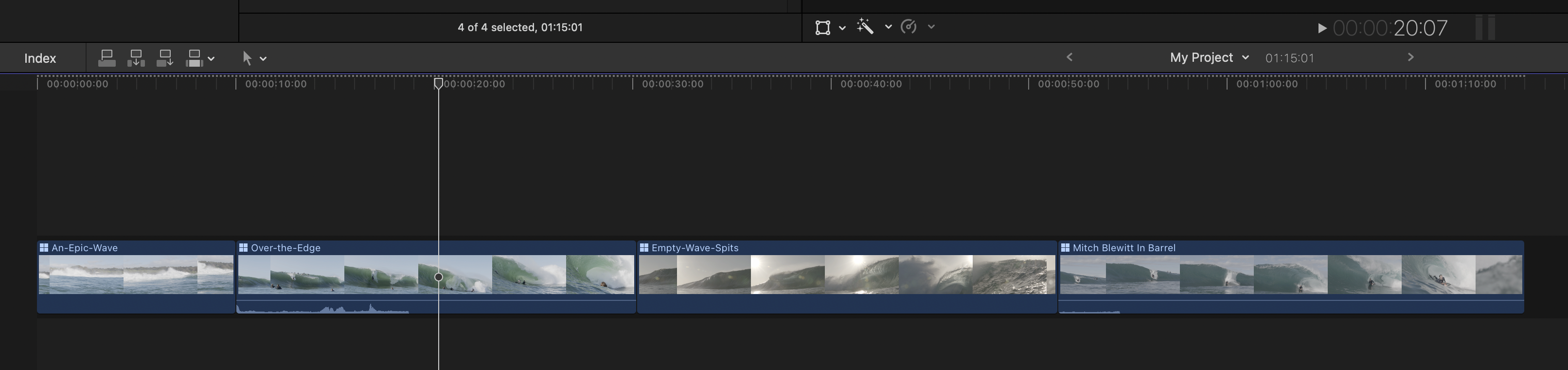 You can now drag these Multicam Clips into a Project/Timeline and start editing, as you would normal video clips.